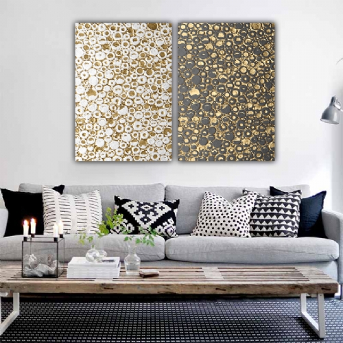2 Adet Altın SİM İŞLEMELİ Kanvas Tablo