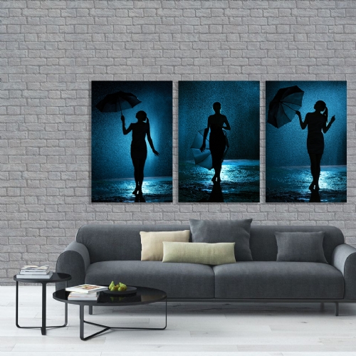 BLUE RAIN SET - YAĞLIBOYA EFEKTLİ KANVAS TABLO