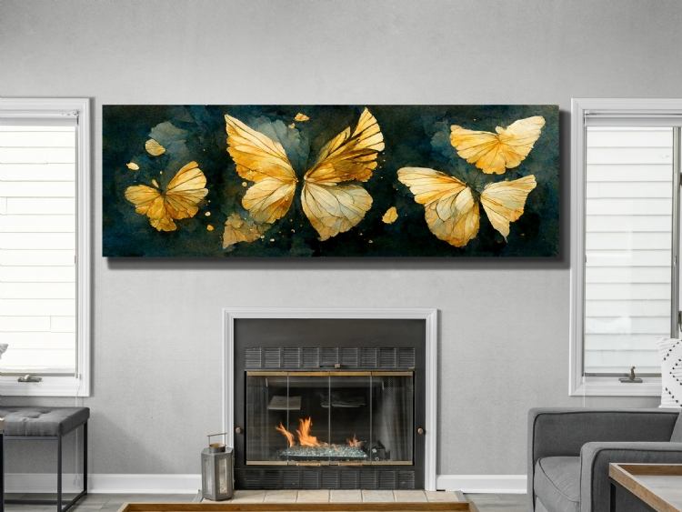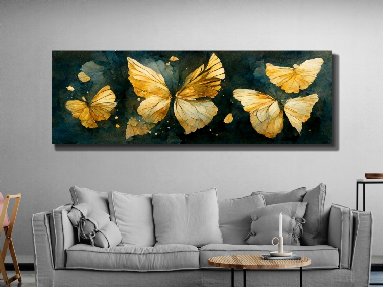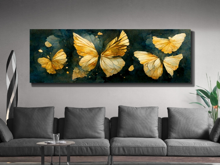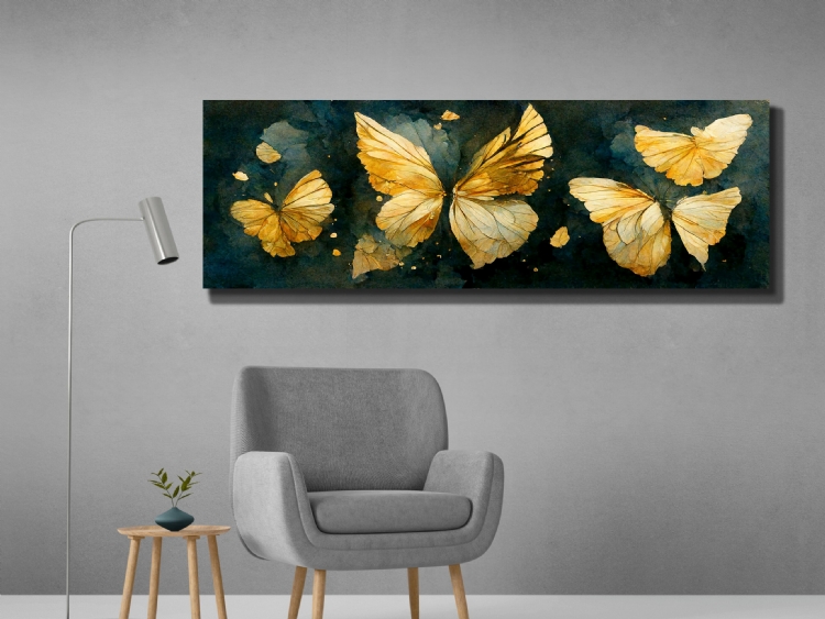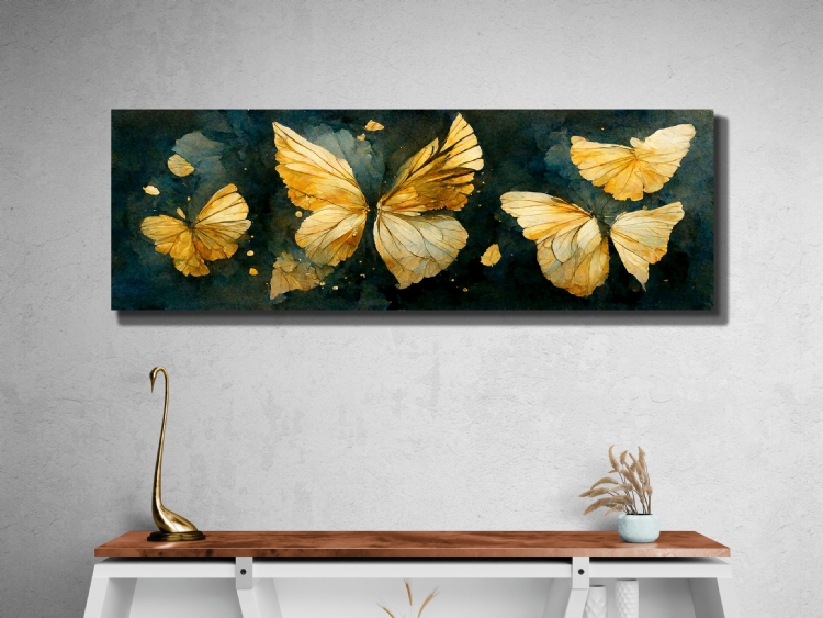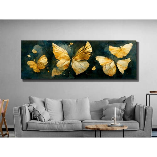 "Sulu Boya Efektli Sarı Kelebekler Dekoratif Hayvan Kanvas Tablo, Modern Duvar Dekoru
