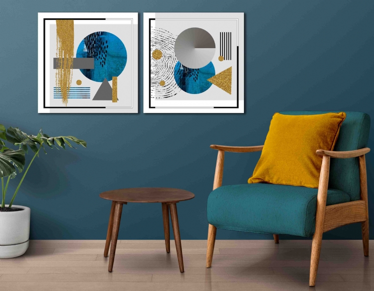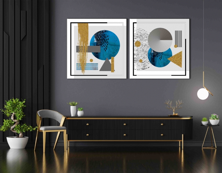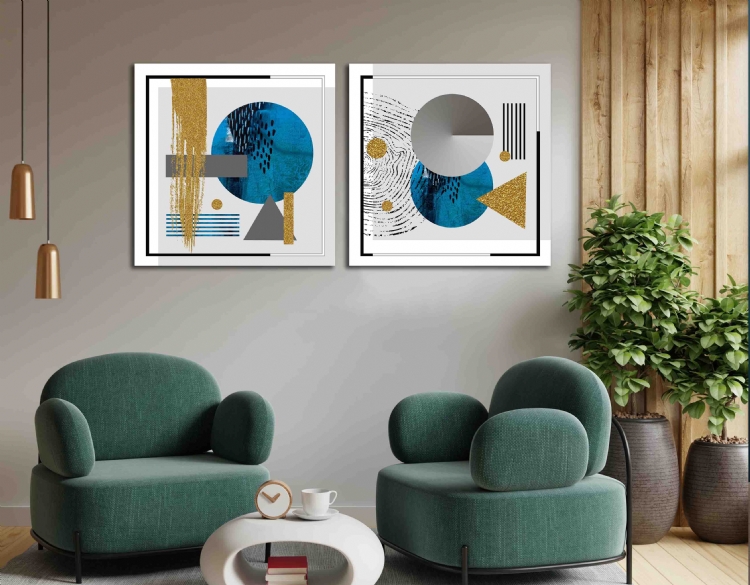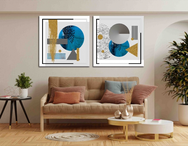 "Soyut Geometrik Şekiller 2'li Set Kanvas Tablo, Dekoratif Ev Ofis Duvar Dekoru ÜRÜNLERİMİZ %100 YERLİ MALZEMELERLE ÜRETİLMİŞTİR.