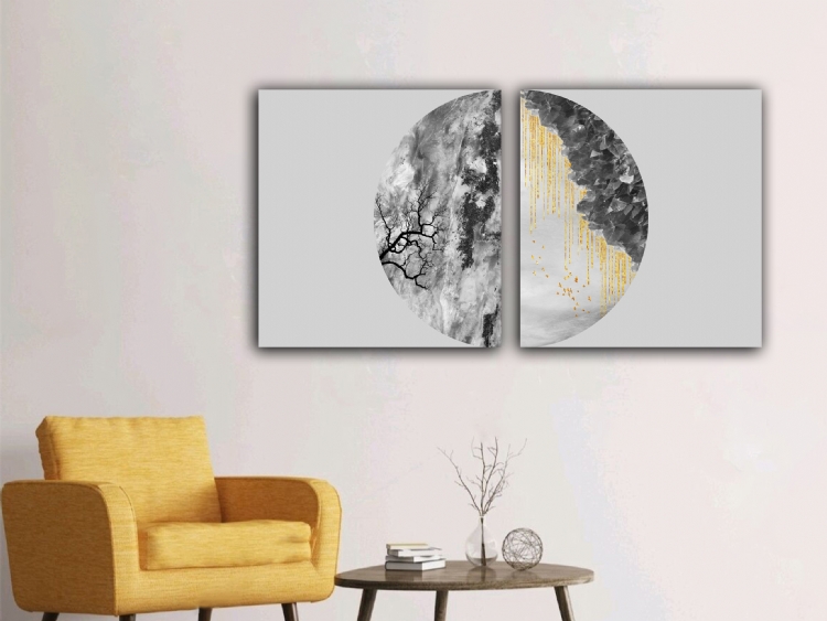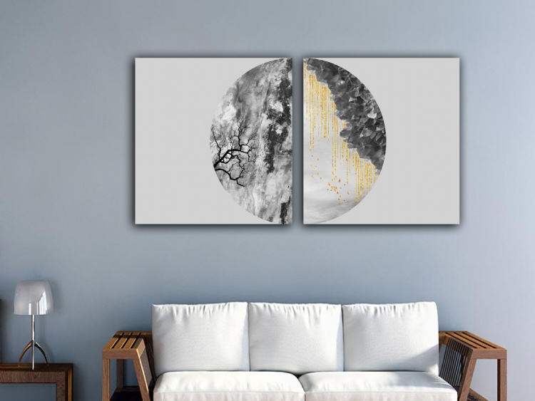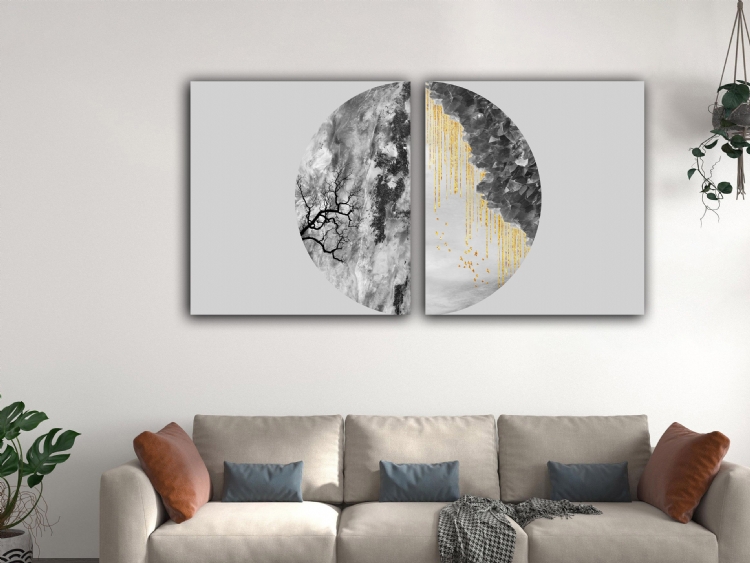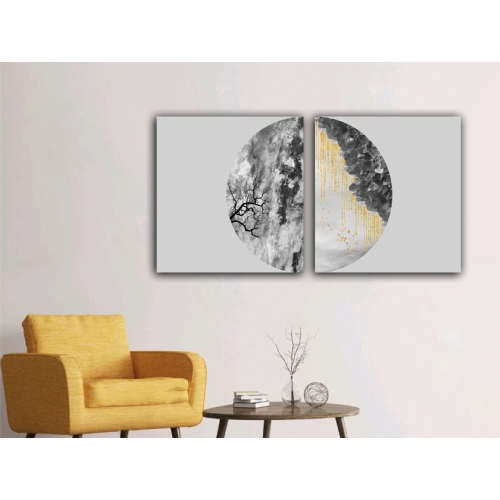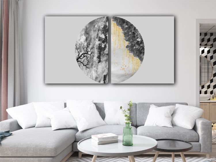 Soyut Yuvarlak Daire 2´li Set Kanvas Tablo, Dekoratif Ev Ofis Duvar Dekoru