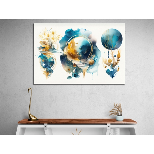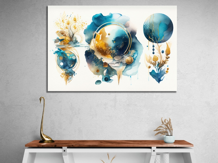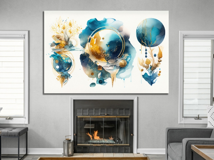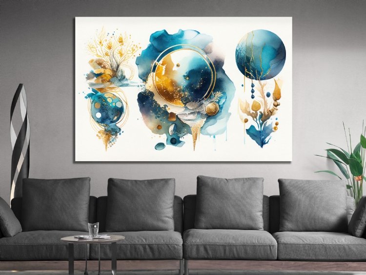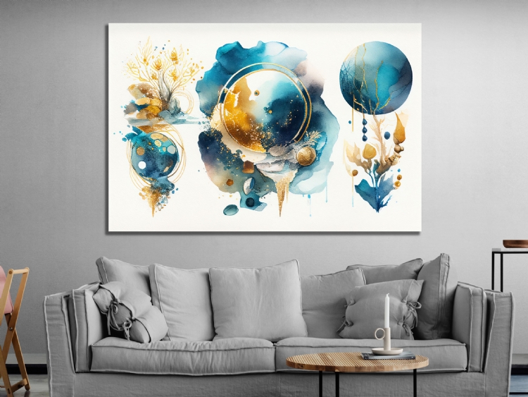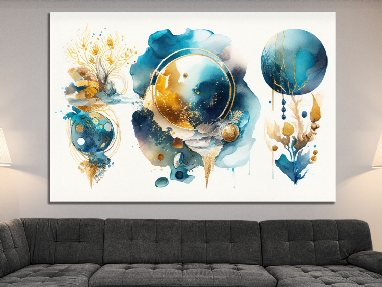 "Mavi Gold Daireler Soyut Kanvas Tablo, Dekoratif Oturma Odası Duvar Dekoru DEĞERLİ MÜŞTERİMİZ,