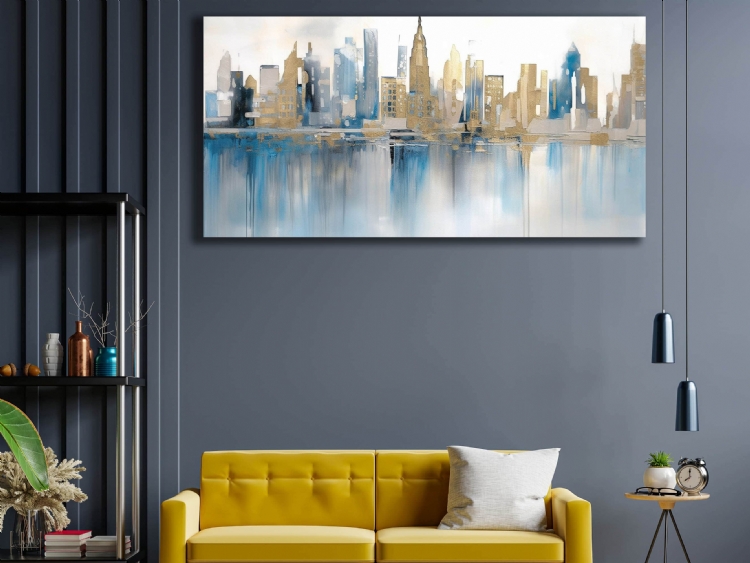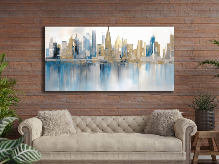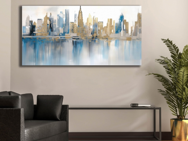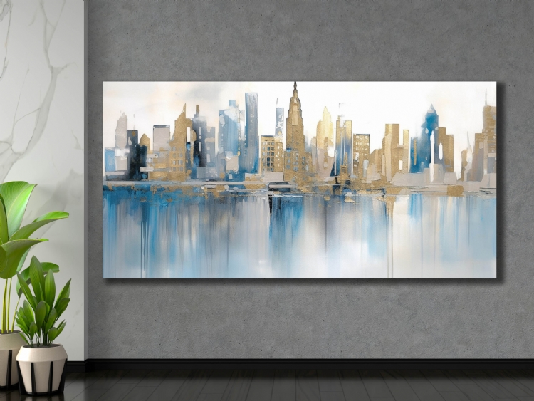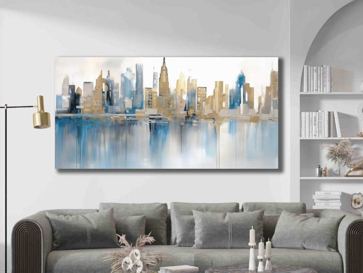 "Soyut Mavi Bej Şehir Binalar Manzara Kanvas Tablo DEĞERLİ MÜŞTERİMİZ,