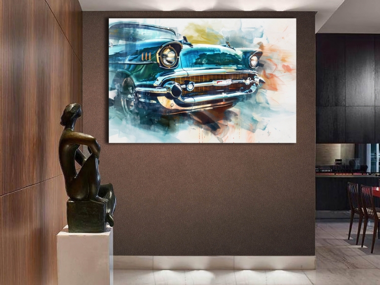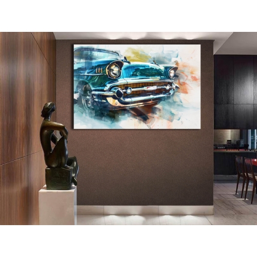 Klasik Model Siyah Yağlı Boya Efektli Araba Kanvas Tablo